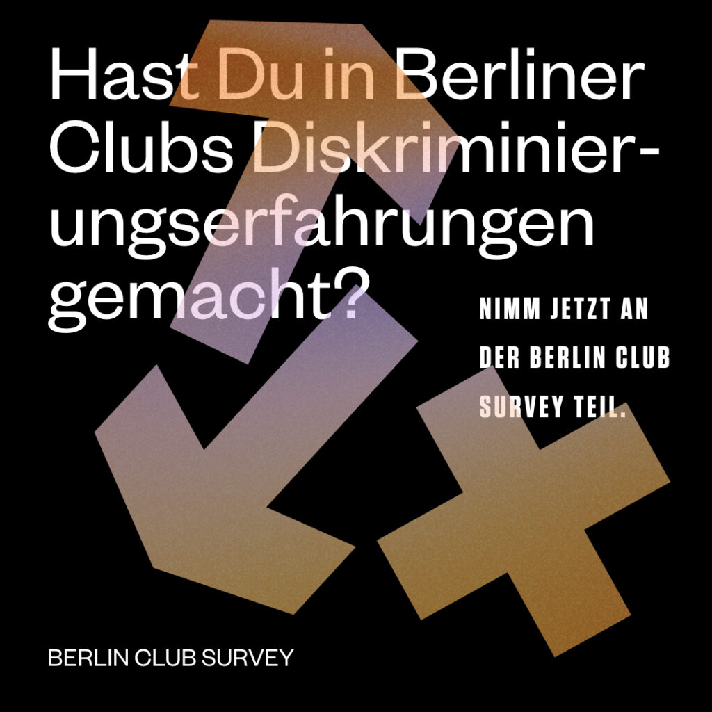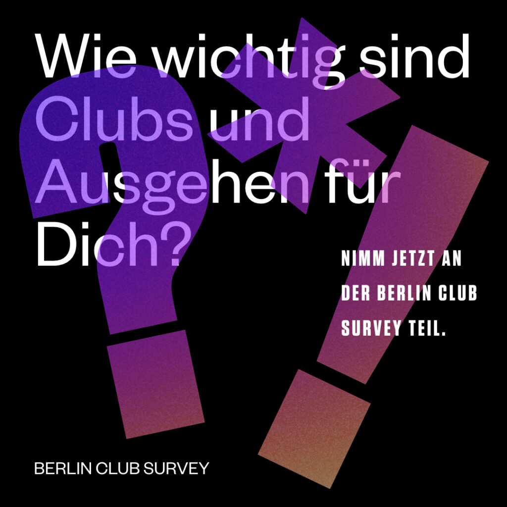 Umgeben von Freund:innen und vielen Unbekannten verbringen wir gemeinsam Nächte und ganze Wochenenden in Clubs. Unsere Wünsche, Bedürfnisse und Erlebnisse sind dabei sehr individuell. Die Berlin Club Survey möchte herausfinden, wie wichtig Clubkultur für Dich ist, wie wohl Du Dich beim Ausgehen fühlst und ob Du schon Diskriminierung in Clubs beobachtet oder selbst erlebt hast. Mit Deiner Teilnahme trägst Du dazu bei, Clubkultur zu schützen und unterstützt die Clubkultur dabei, möglichst sichere und vielfältige Räume selbst zu gestalten.