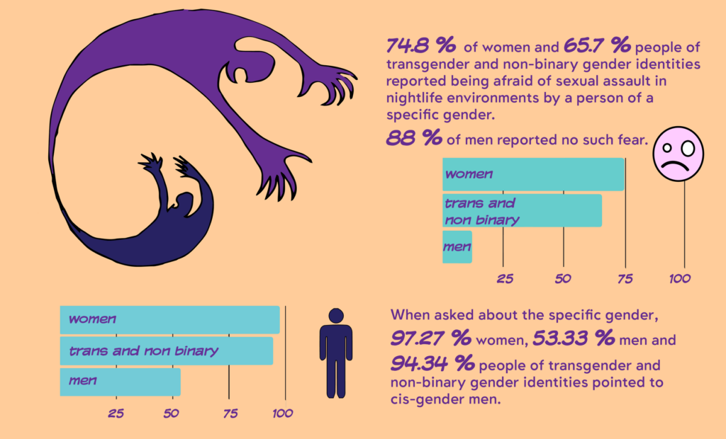 The research explores the intersections between sexual violence, nightlife environments (e.g. party spaces, going out at night) and drug use in Europe. We believe that this study can increase knowledge about sexism and the rape culture in different European regions, and inform policies and practices in nightlife that will result in more egalitarian Nightlife settings!