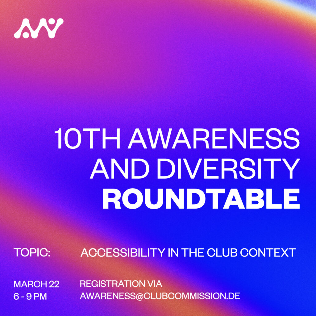 With this roundtable, we would like to promote a change of perspective that people with disabilities are not disabled, but are hindered by certain barriers and that we can all contribute to more participation in our work. Together with the invited experts, we will look at the topic of accessibility from the different perspectives of club guests with disabilities, club operators, initiatives that are committed to reducing barriers at events and the legal framework. We want to exchange ideas and learn together what we can all do for more participation and the reduction of barriers in clubs and at club cultural events.